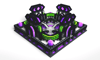 A clean, futuristic spawn. Featuring 4 exits (or portals), space for NPCs, crates, etc., and a cool purple & green palette your players are sure to love!